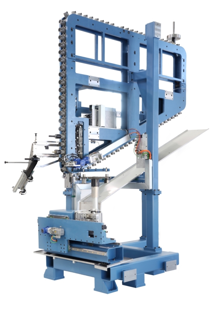 Das 0259 Wechselsystem wurde speziell für das geringe Platzangebot sehr schmal gebaut. Dabei hilft die igelförmige Anordnung der Werkzeuge. Außerdem kann der verbaute Werkzeugwechsler durch die Orientierung der Werkzeuge am unteren Umlenkpunkt ohne Zusatzhandling die Werkzeuge entnehmen und in die Spindel wechseln.